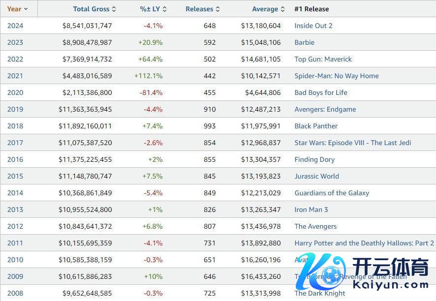2024年,民众第一大电影阛阓北好意思电影票房85.41亿好意思元,较2023年的89.08亿好意思元下落4.1%,离疫情前2018年巅峰时的119亿好意思元还有很大差距。