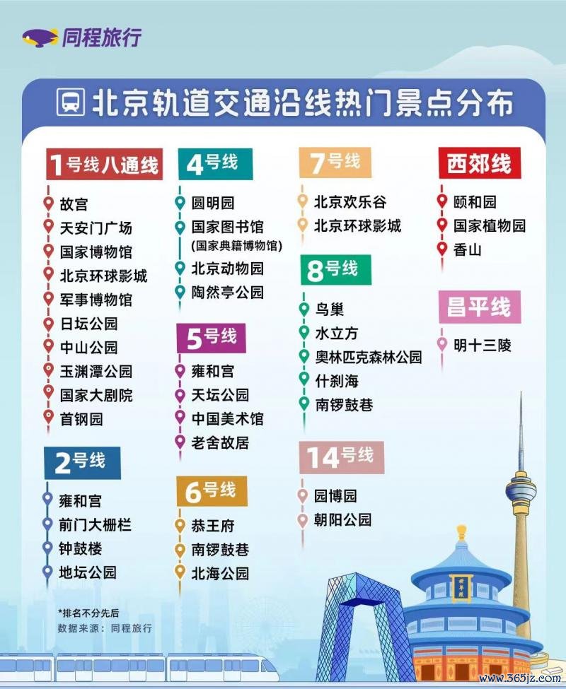 按照轨谈交通澄莹分散来看,北京地铁1号线由于沿线热点景区较多,成为城市通搭客最密集的地铁澄莹。地铁2号线、5号线、8号线和4号线也投入北京旅游热点地铁澄莹TOP5。2024年北京地铁12号线和3号线的洞开,也带动了左近798艺术区、向阳公园等景区旅游热度上升。