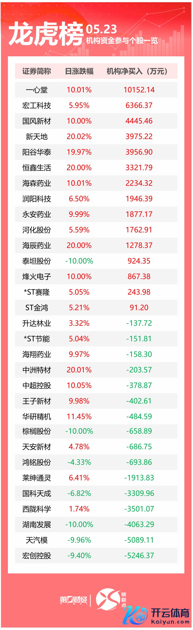 0 05-27 16:27龙虎榜丨机构本日抛售这16股,买入一心堂1.02亿元